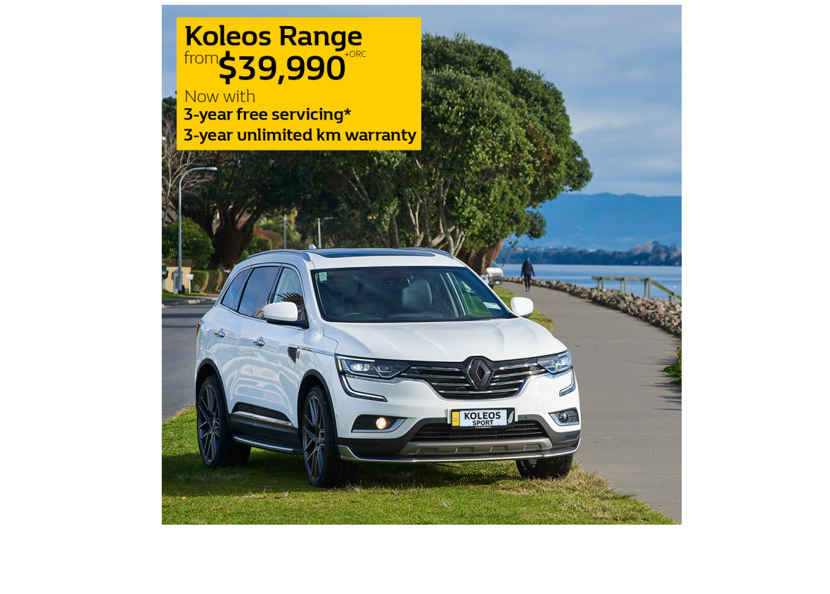 *Offer valid on all new Koleos vehicles sold within the month of November 2019. First 3 services are included as per the Renault Koleos service schedule. Koleos Sport pictured.